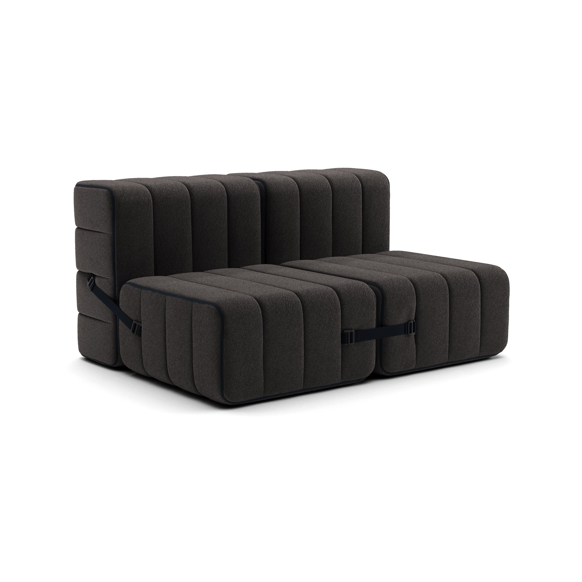 Curt-Set 4 besteht aus vier identischen Modulen, die über das patentangemeldete Curt-Verbindungssystem zu mehr als 20 unterschiedlichen Sitz- und Liegevarianten kombiniert werden können – vom kompakten 2-Sitzer über Chaiselongue bis zur offenen Sitzinsel.