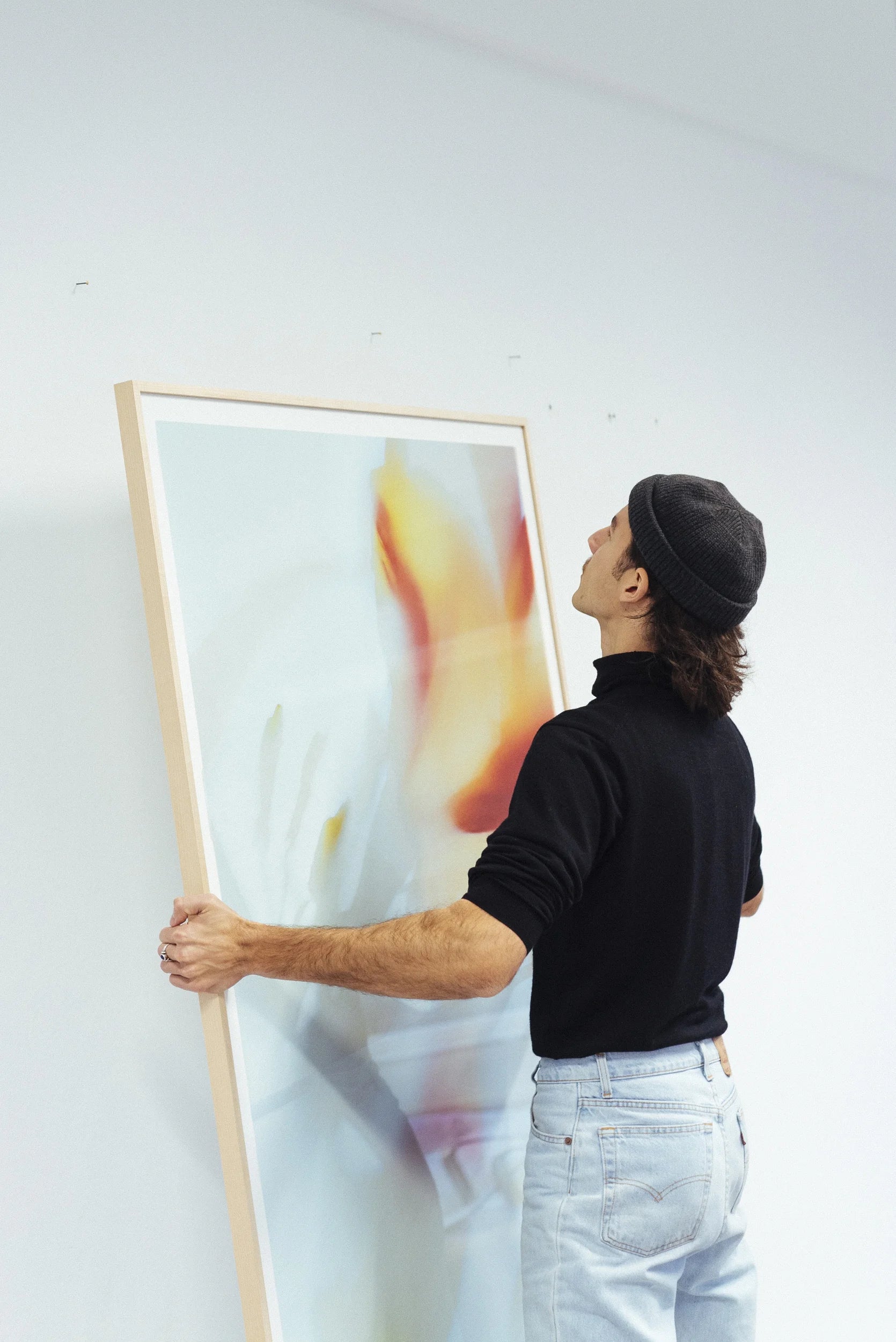 Die Belichtung direkt in der Kamera erzeugt unkontrollierbare Licht- und Farbakzente, die jedes Werk zu einem einzigartigen Unikat machen.