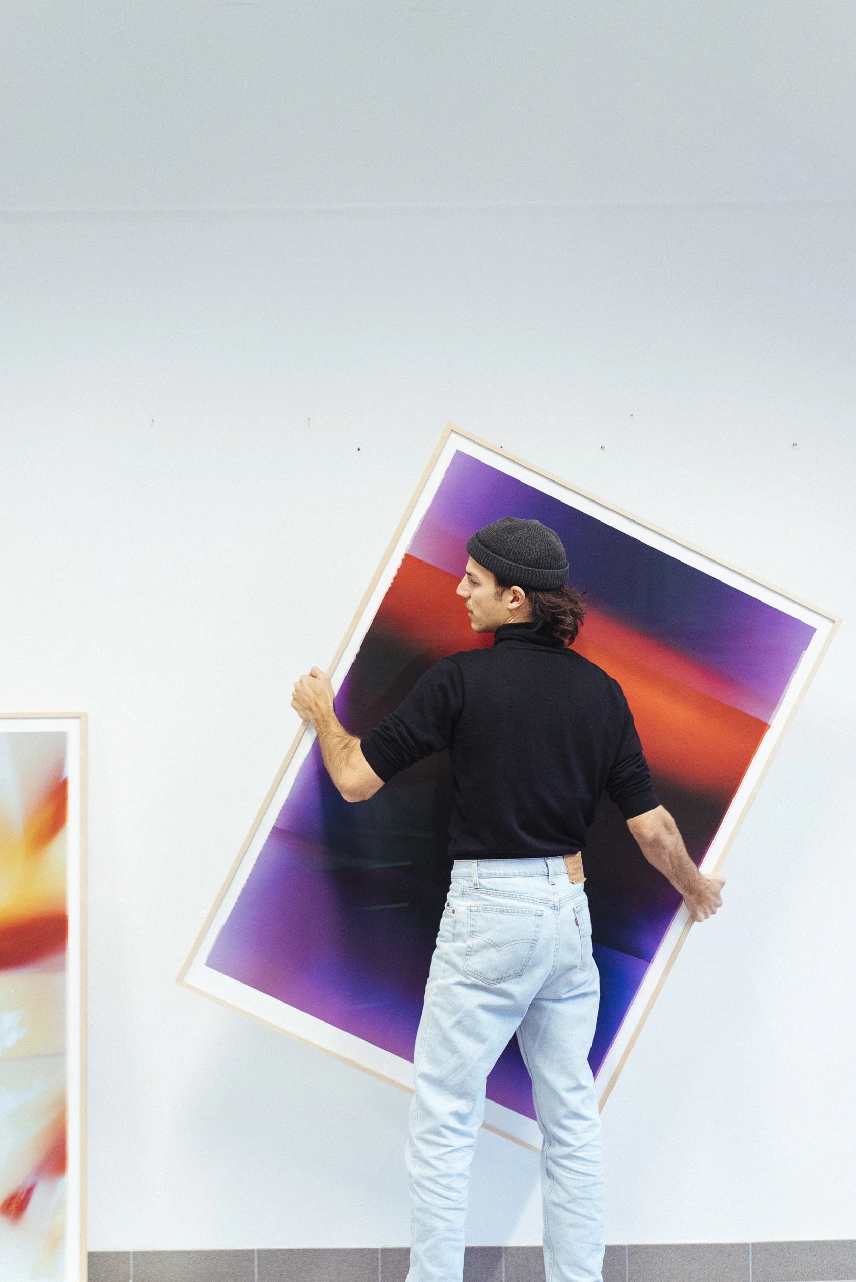 Die Belichtung direkt in der Kamera erzeugt unkontrollierbare Licht- und Farbakzente, die jedes Werk zu einem einzigartigen Unikat machen.