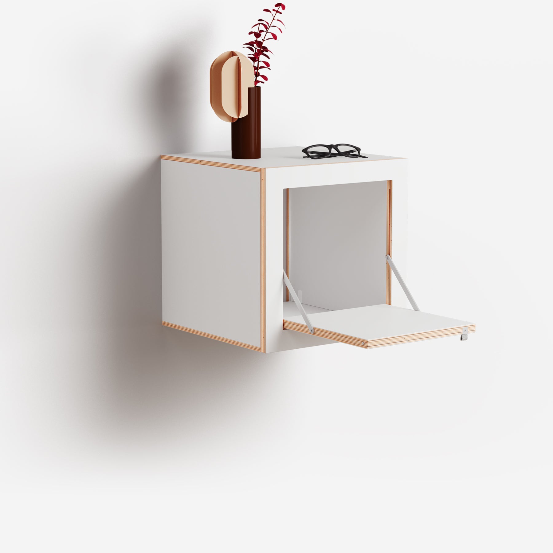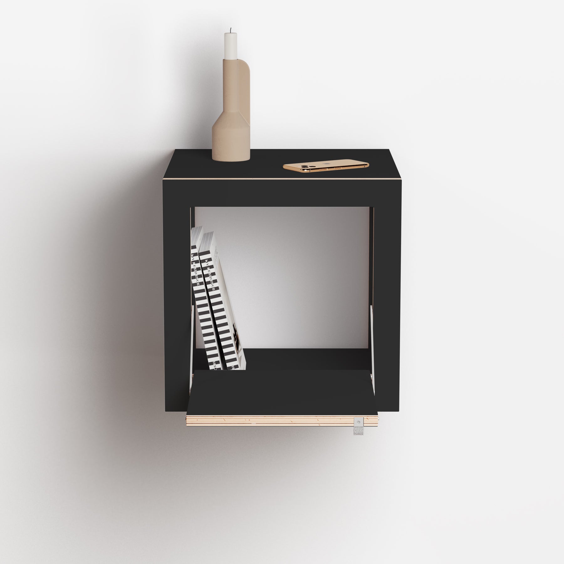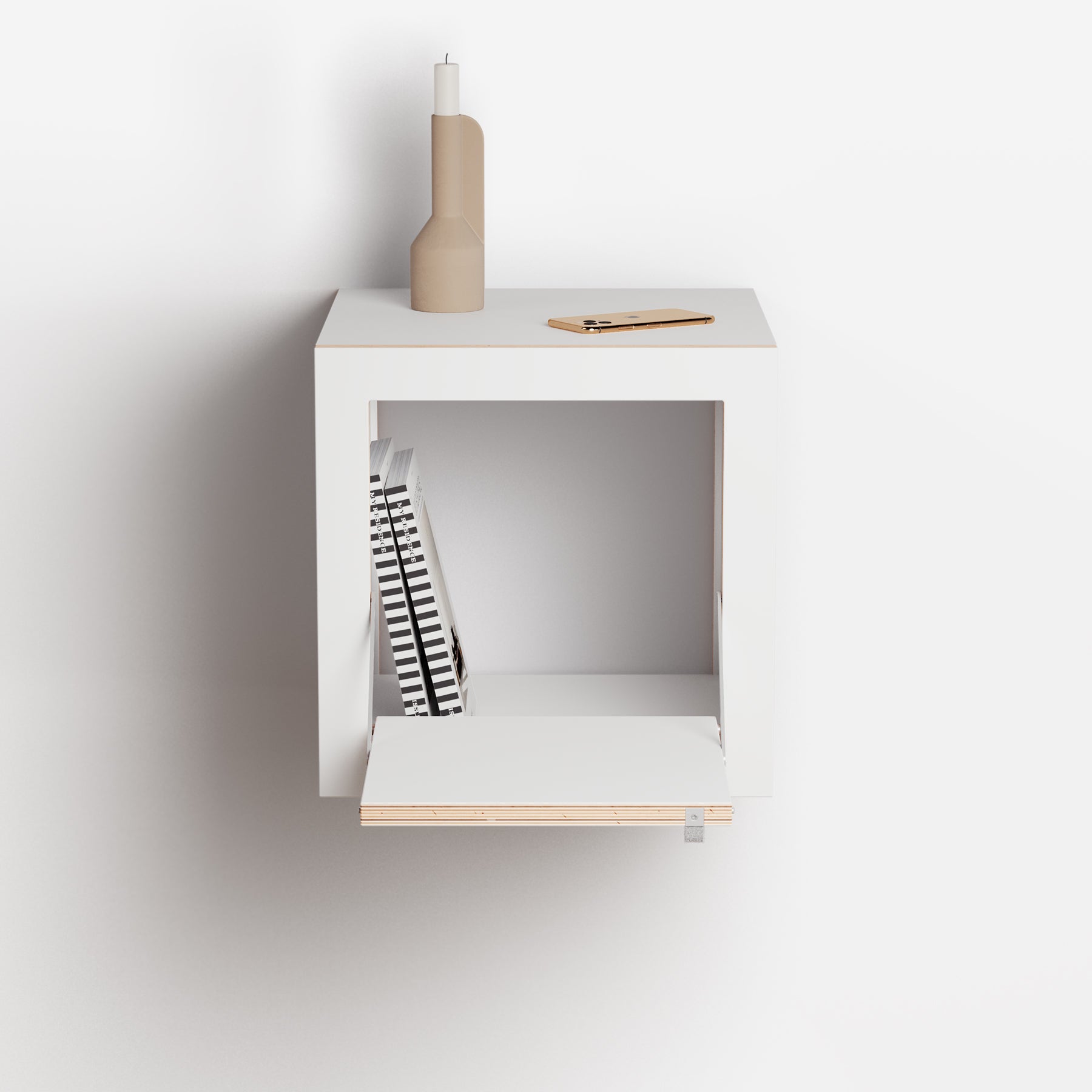 Der Fläpps Box Nachttisch ist ein klappbarer Wand-Nachttisch mit überraschend viel Stauraum. Ideal für all die Dinge, für die auf klassischen Nachttischen kein Platz mehr ist – reduziert im Design, funktional im Alltag und in Schwarz oder Weiß erhältlich.