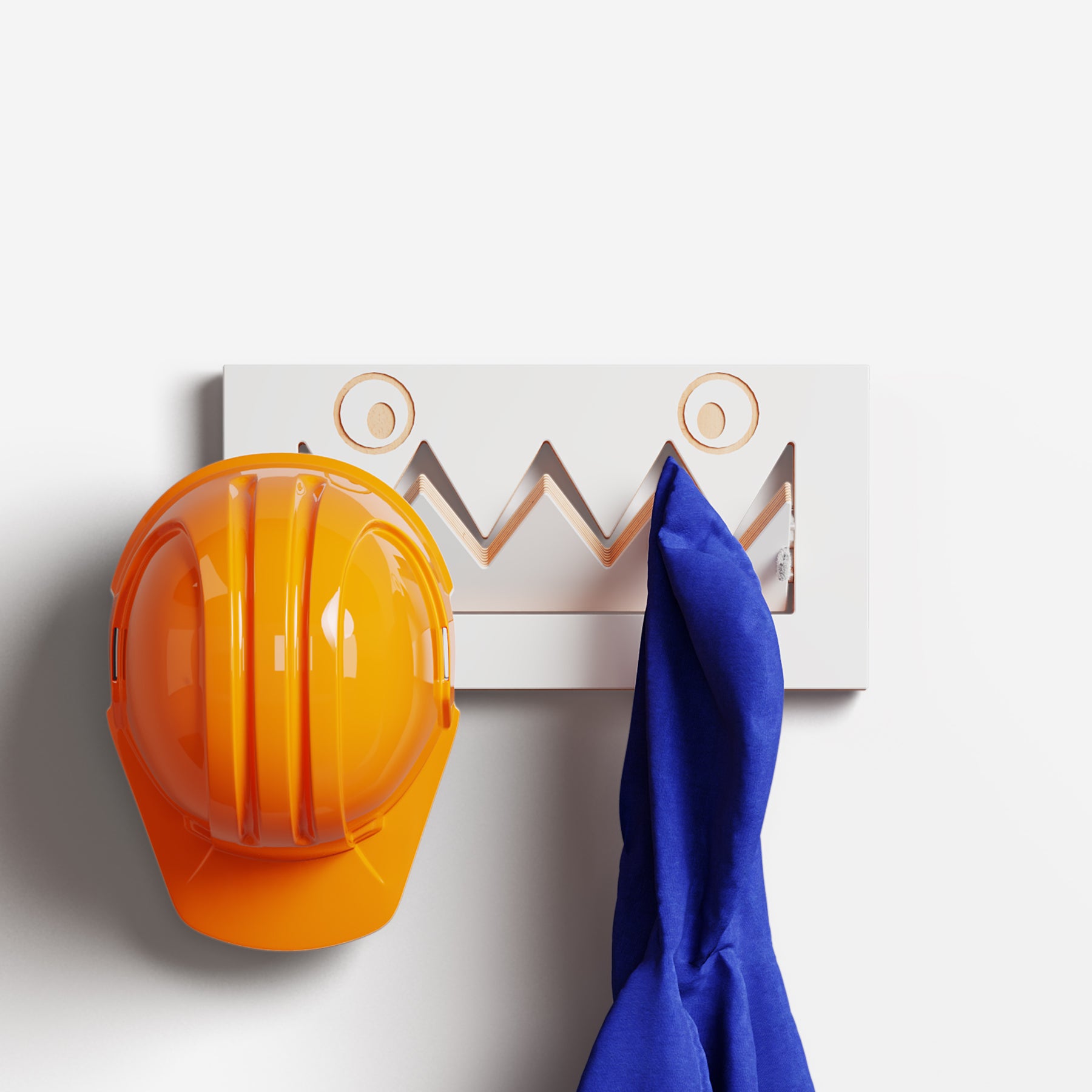 Monsterhäng ist eine klappbare Garderobe für Kinderzimmer, die Ordnung spielerisch leicht macht. Jacken, Rucksäcke und Taschen verschwinden im Handumdrehen an der Wand – und tauchen genauso schnell wieder auf, wenn sie gebraucht werden.