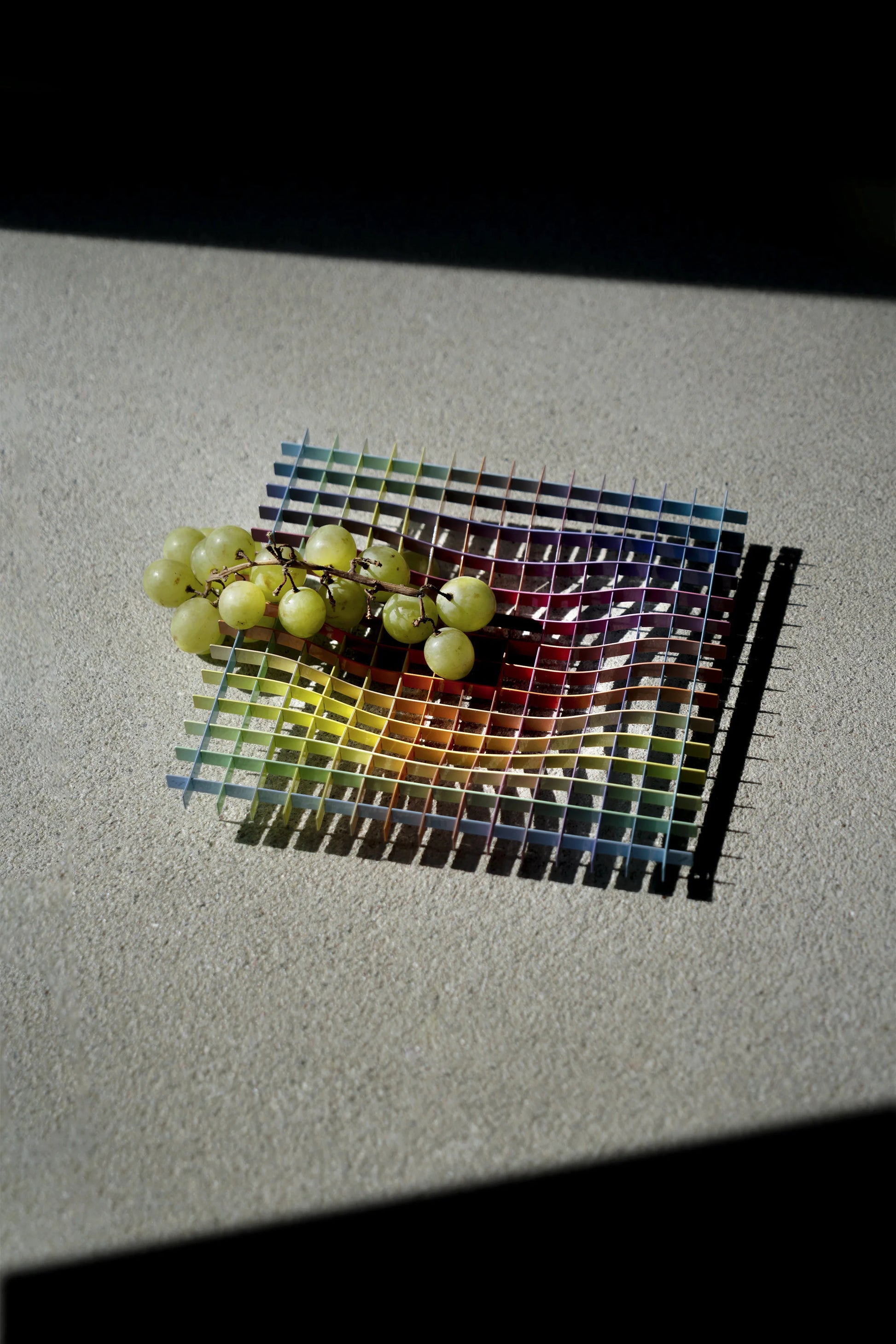Der GRAVITY Tablett spielt mit der Idee einer gekrümmten Raumstruktur: Ein glänzendes, leicht verzogenes Gitter scheint von unsichtbaren Kräften beeinflusst zu werden. Die einzelnen Elemente sind raffiniert ineinander verriegelt, wodurch das Grid flexibel bleibt – so lässt sich der Neigungswinkel leicht anpassen, was dem Objekt zusätzliche Dynamik verleiht.
