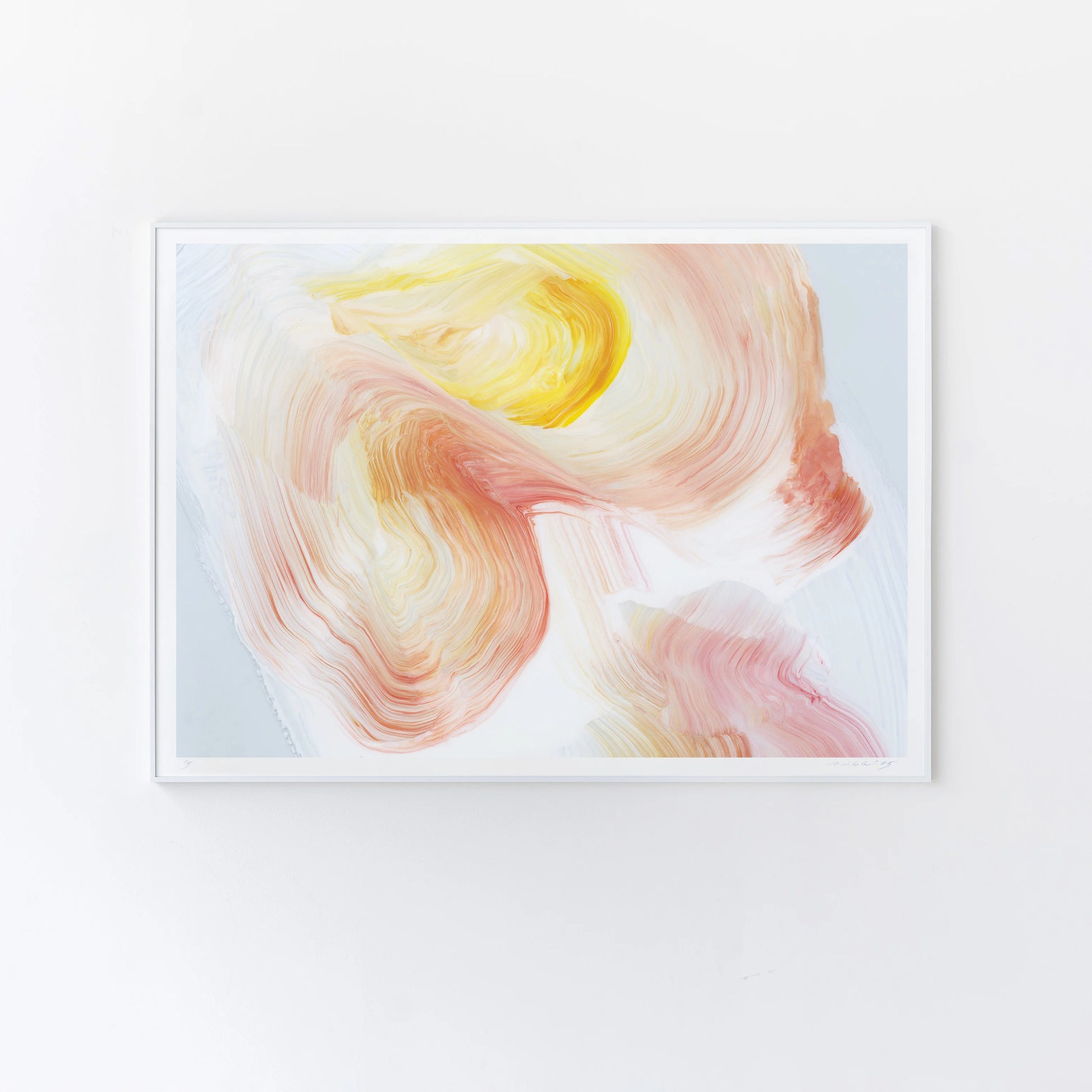 Eine reduzierte abstrakte Komposition als hochwertiger Pigmentdruck, die mit Farbe, Form und Raum eine ruhige, zugleich spannungsvolle Bildwirkung entfaltet.