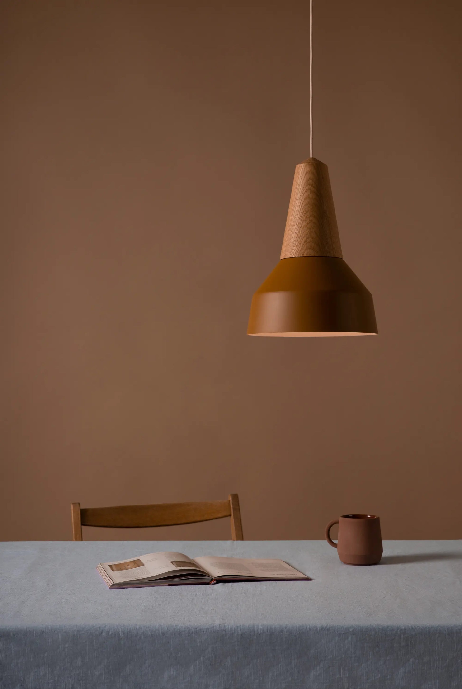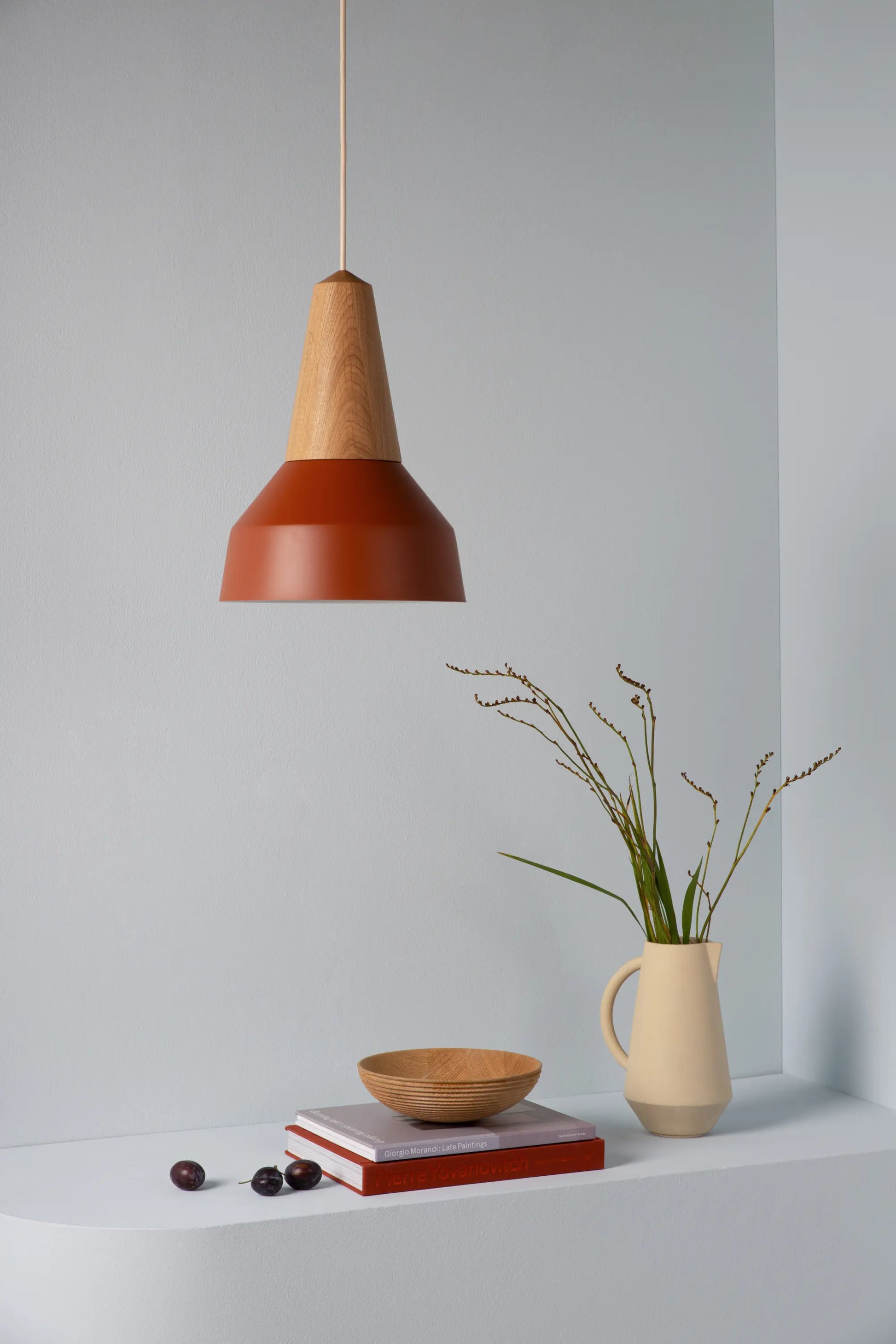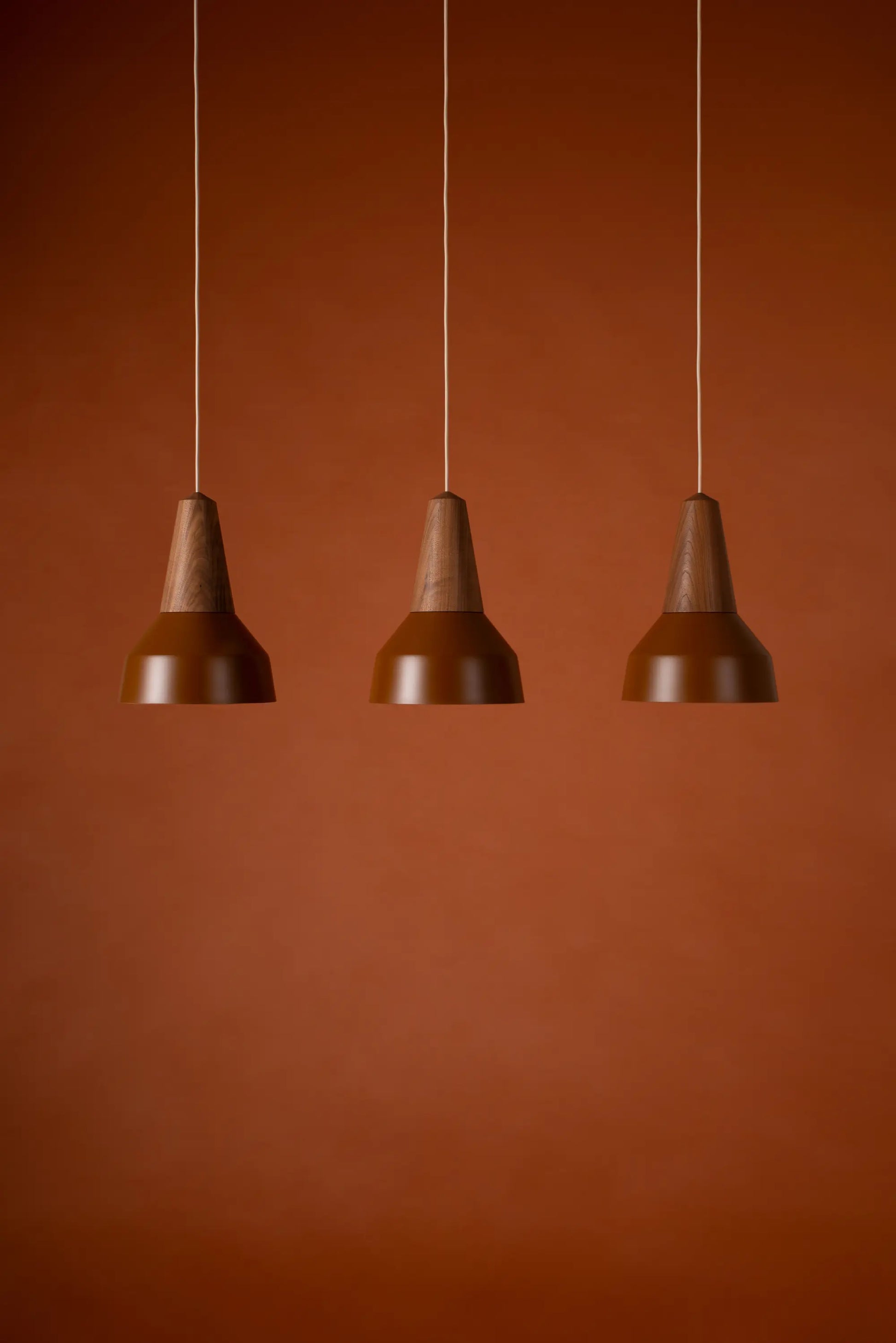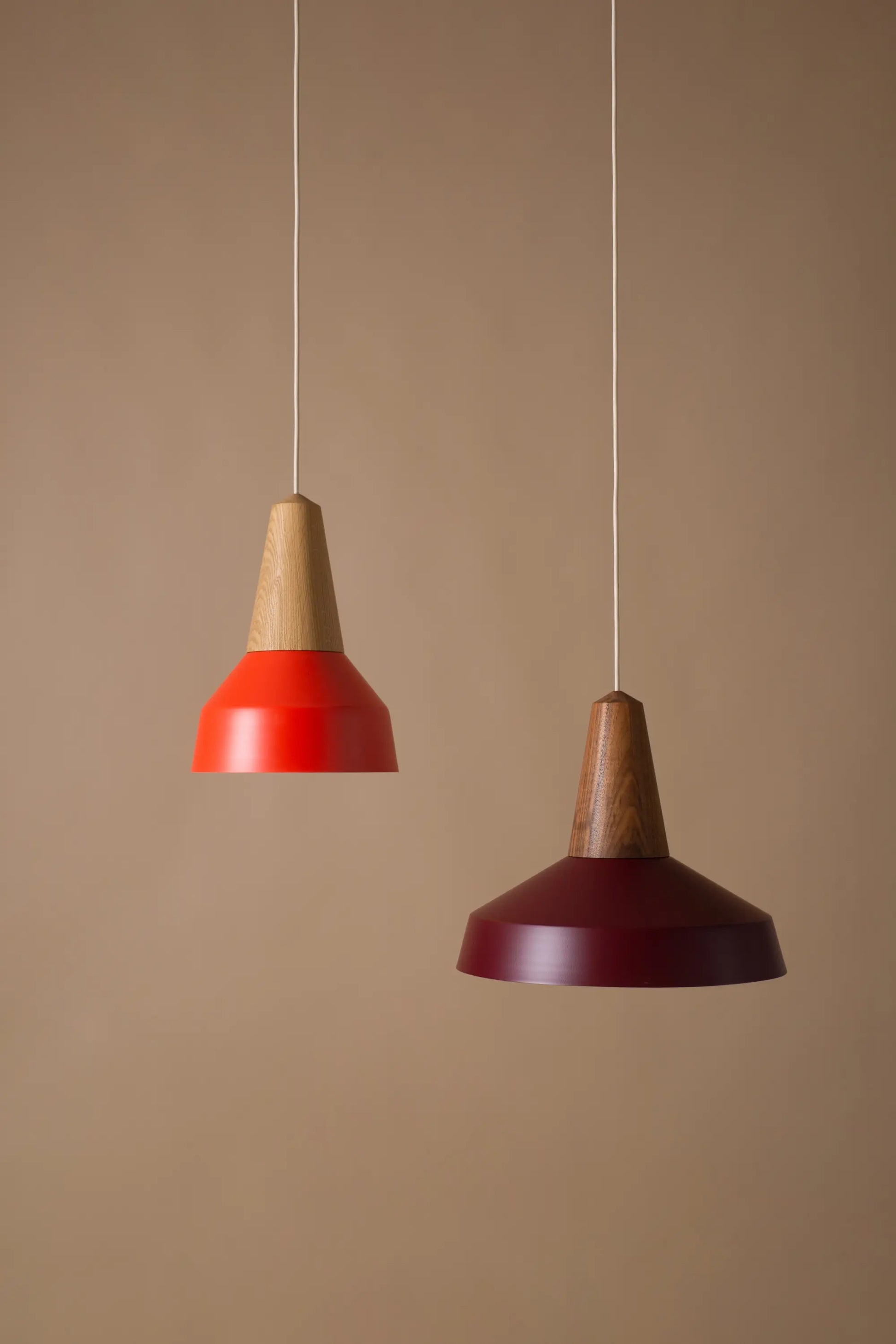 Holzart und Schirmfarbe können bei der Auswahl frei kombiniert werden und ermöglichen unterschiedliche Zusammenstellungen innerhalb derselben Form. Ob als einzelne Leuchte oder in einer Gruppe arrangiert: Eikon bringt Farbe, Form und Material in ein ruhiges Gleichgewicht.