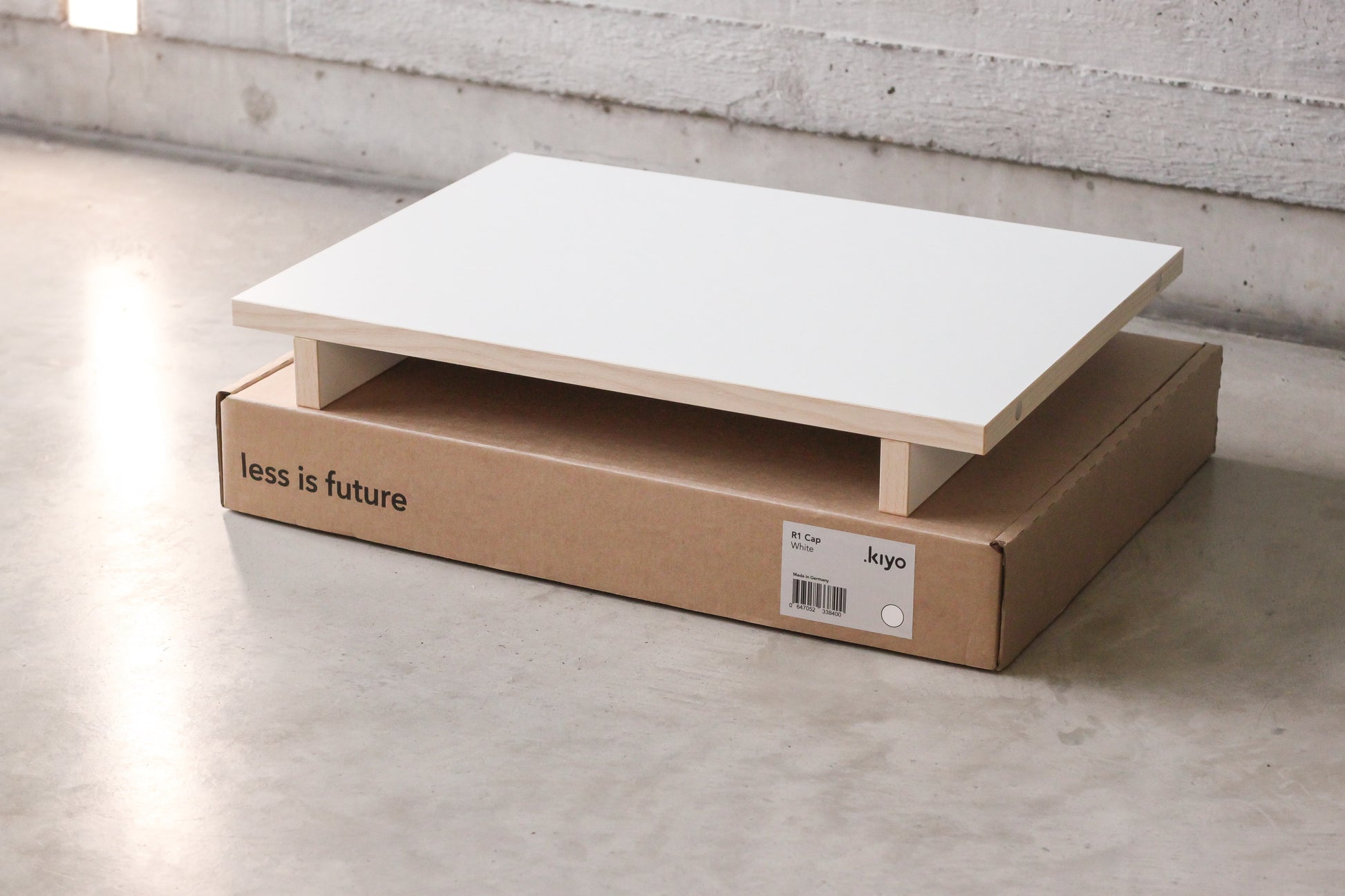 Gefertigt aus FSC®-zertifiziertem MDF in Tischlerqualität, verfügt R1 Cap über Echtholz-Kanten aus Esche und eine melaminbeschichtete Oberfläche. Das Element wird fertig montiert geliefert und ist in den gleichen Farben wie die R1 Cubes erhältlich. Die Produktion erfolgt in Deutschland durch Meistertischlereien mit hoher Materialeffizienz.