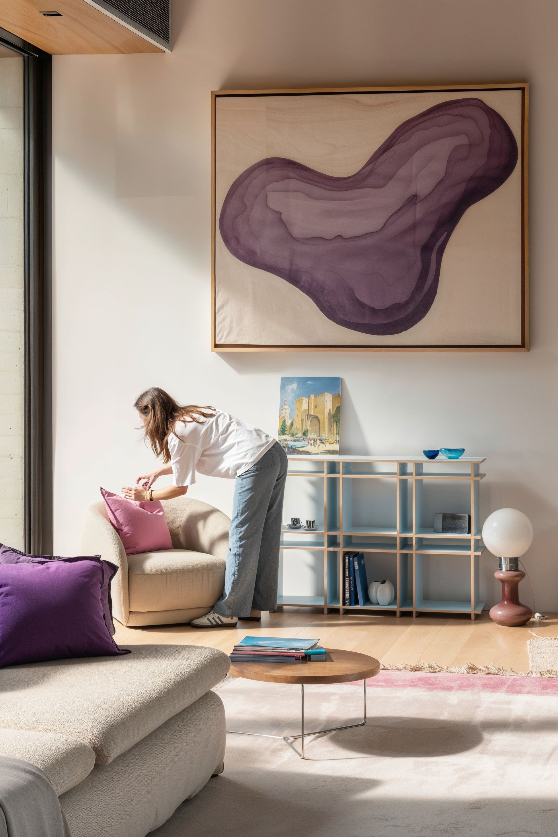 Das R1 Highboard Bundle kombiniert sechs R1 Cubes mit drei R1 Caps zu einem vielseitigen Stauraummöbel mit großzügigen Fächern. Es eignet sich für Bücher, Elektronik oder Dekoration und lässt sich dank des modularen Aufbaus flexibel im Wohn- oder Arbeitsbereich einsetzen. Die Kombination aus zwei Höhen sorgt für eine ausgewogene Frontalansicht und vielseitige Nutzungsmöglichkeiten.