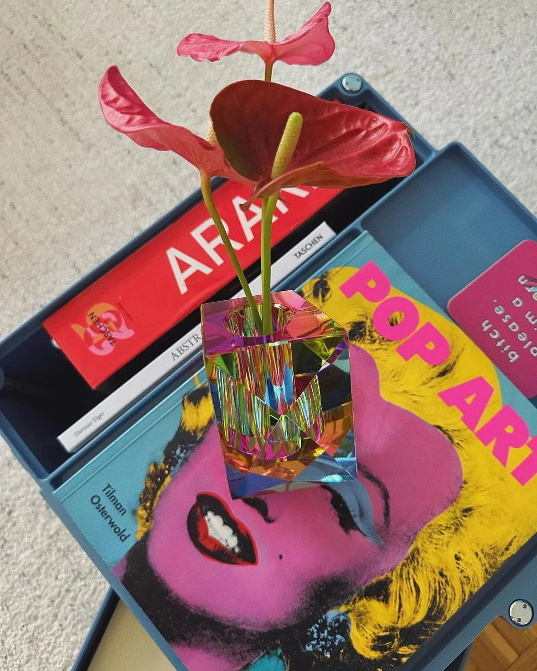 Die Vase ist bewusst schräg ausgerichtet, was besonders ausdrucksstarke Blumenarrangements ermöglicht.Kantige, moderne Formgebung