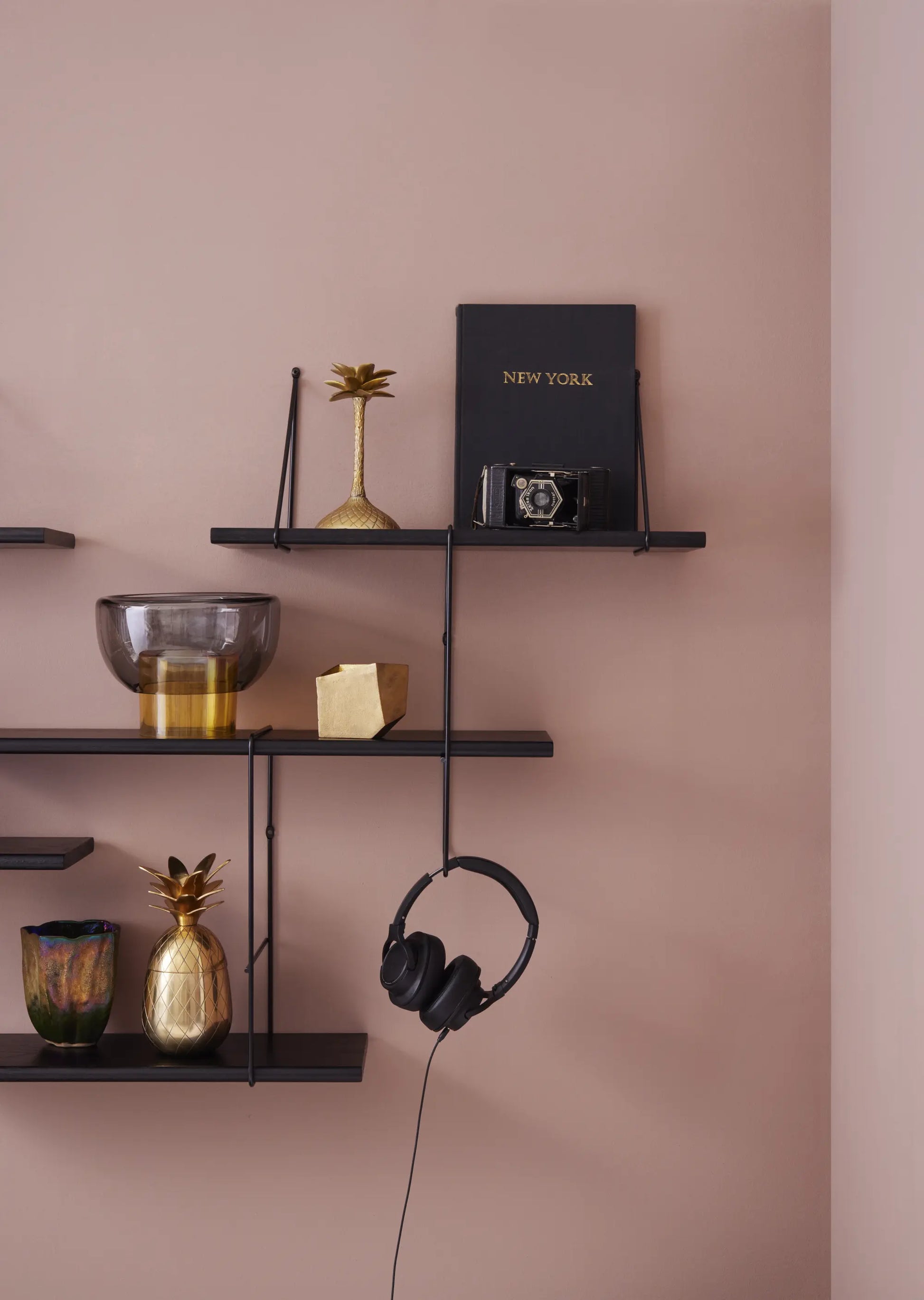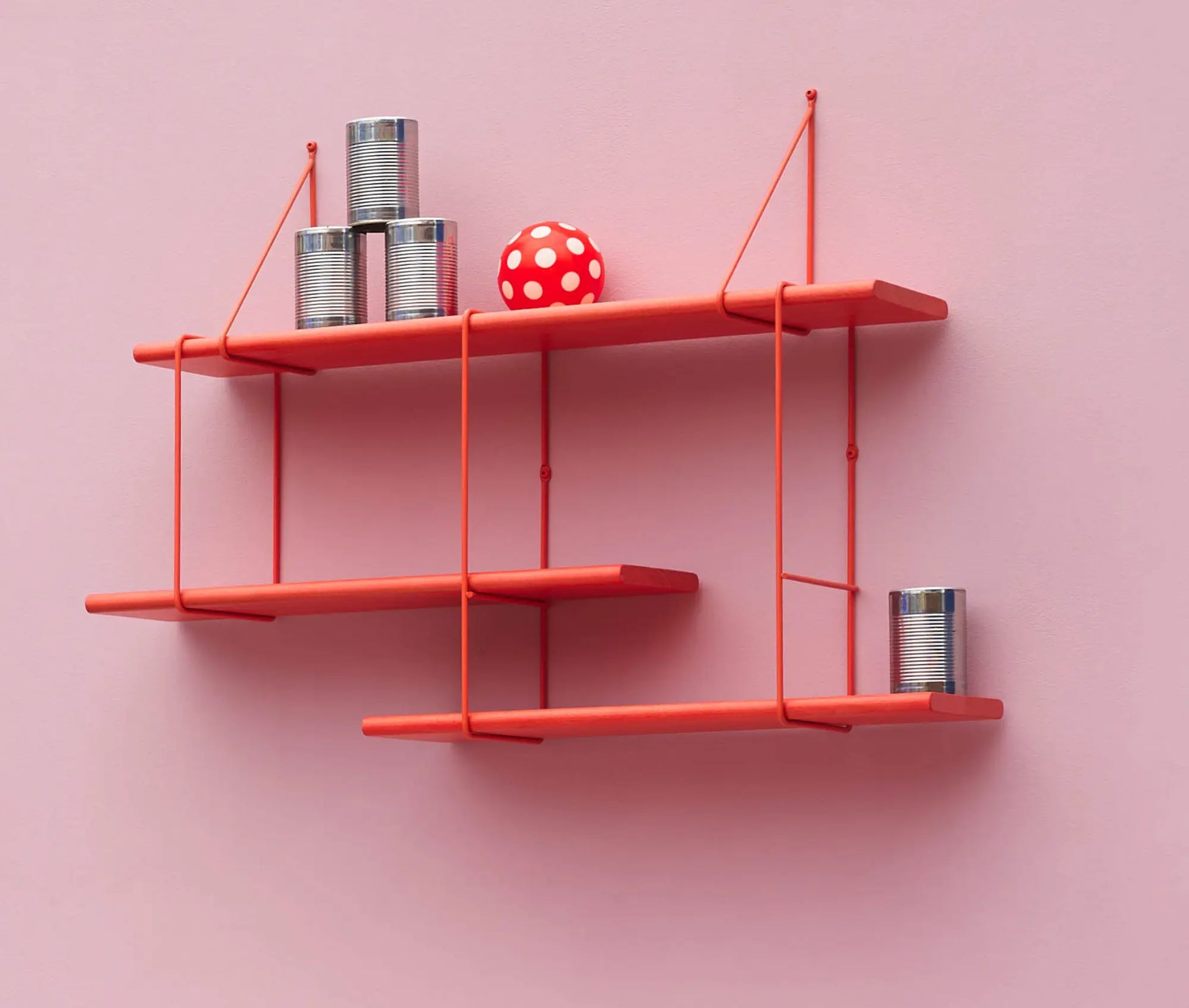 Shrink ist die kompakte Variante des LINK Regalsystems und wurde für kleinere Wandflächen entwickelt. Die Konstruktion basiert auf massiven Holzböden und pulverbeschichteten Stahlbügeln und kann mit weiteren Elementen kombiniert werden.