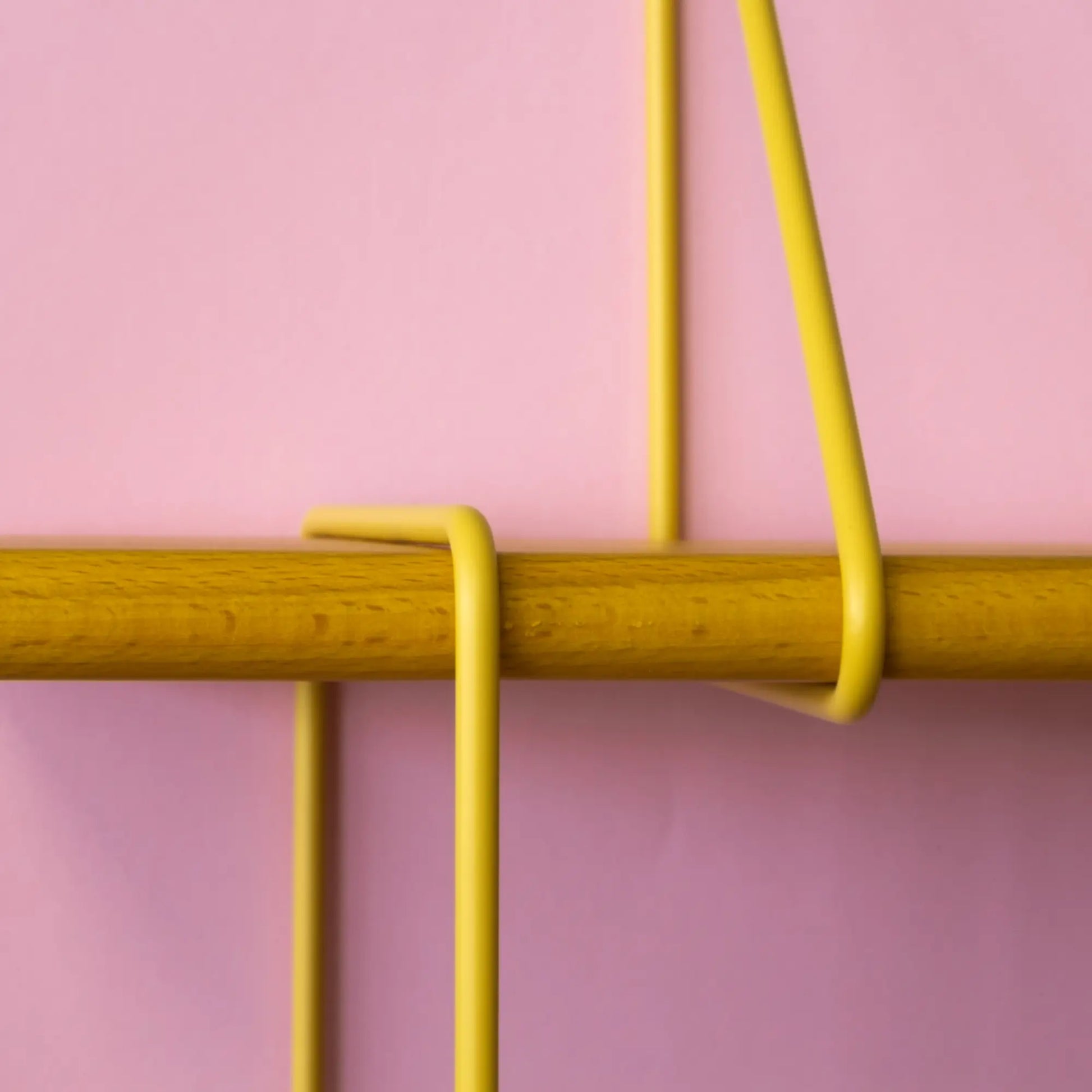 Massives Holz trifft auf pulverbeschichtete Stahlbügel.Entwurf
